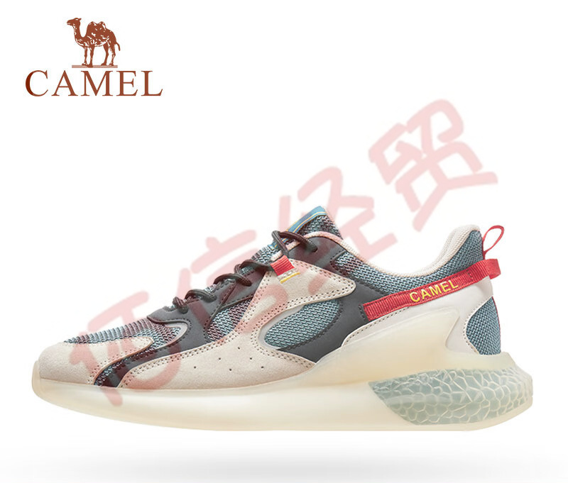 骆驼(CAMEL) 运动鞋男舒适软底旅游鞋减震复古潮流跑步鞋 A112397125,米灰/湖绿,男 42 自营
