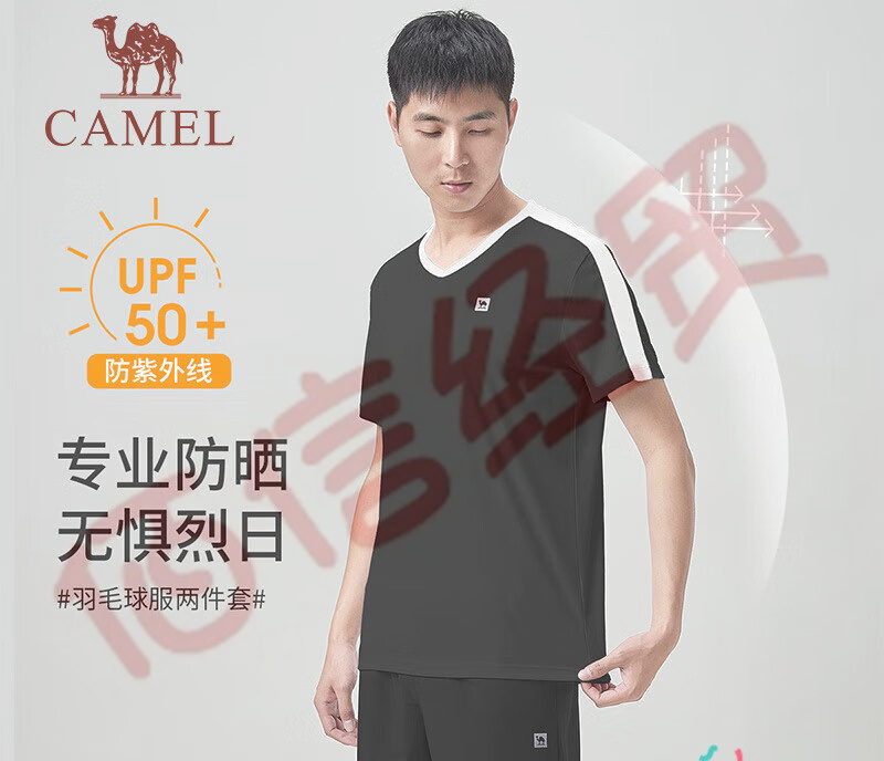 骆驼(CAMEL)羽毛球服套装男运动上衣女速干短裤乒乓球网球专业训练服夏季 幻影黑 S 自营
