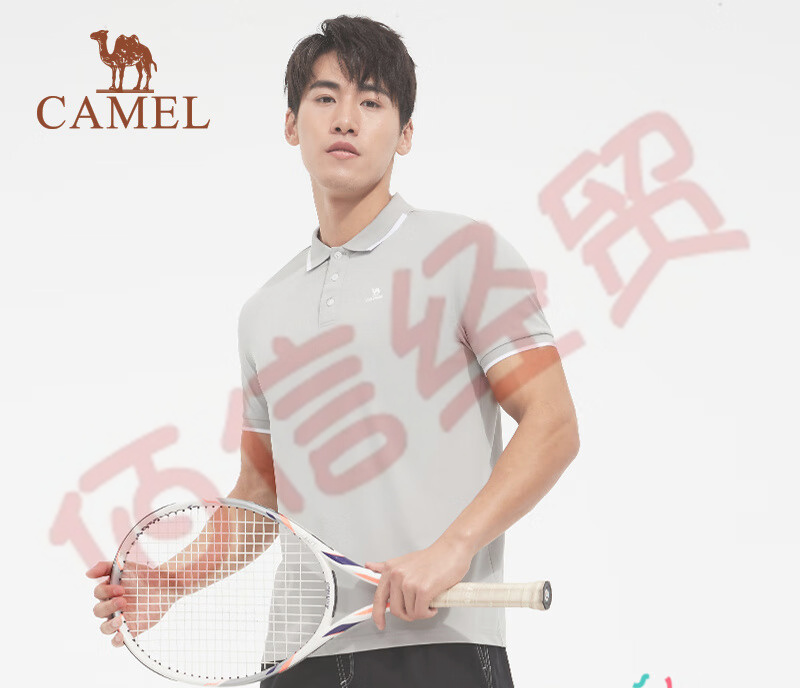 骆驼(CAMEL)polo衫季薄款男款翻领宽松短袖新款纯色运动T恤 C452251002,浅灰,男 M 自营
