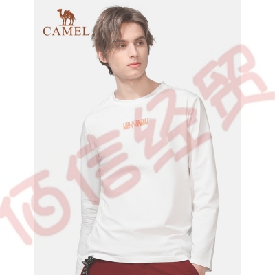 骆驼(CAMEL)户外男款长袖T恤宽松潮牌圆领卫衣宽松休闲上衣 A1S2TF115,白色,男款 L 自营