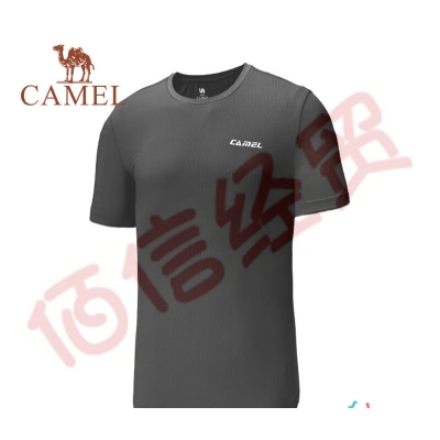 骆驼(CAMEL)运动T恤男女2023春夏透气简约百搭户外休闲情侣圆领T恤 C1S286915,黑色,男 M 自营