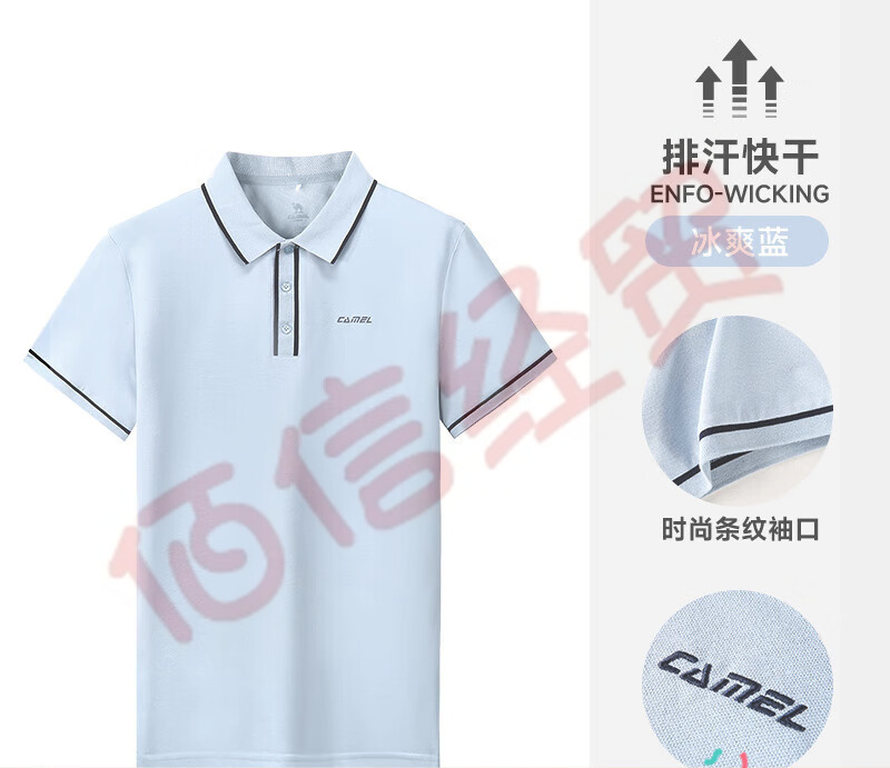 骆驼(CAMEL)男装速干POLO衫男士2023春夏款翻领宽松透气情侣短袖女上衣 J13BA23014,冰爽蓝,男 M 自营