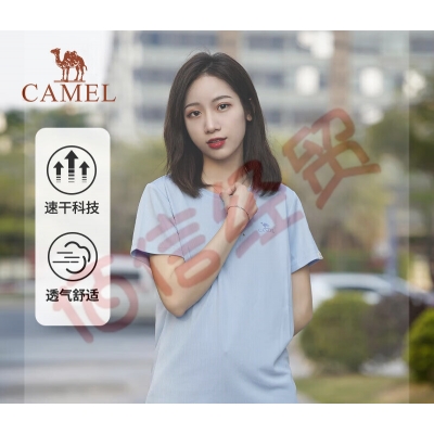 骆驼(CAMEL)运动T恤男速干短袖2023夏季透气凉感休闲上衣运动T恤女 7A22224459,水波蓝,女 M 自营