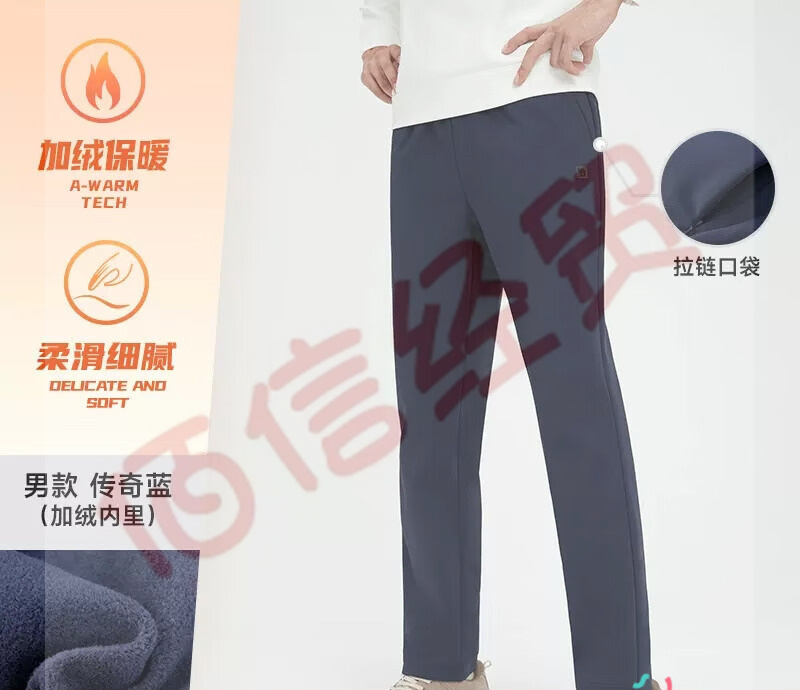 骆驼(CAMEL)运动长裤男2023春冬针织保暖加绒跑步宽松直筒裤子女 JC12263881,传奇蓝,男 M 自营