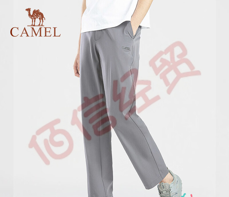 骆驼(CAMEL)速干裤男薄款透气弹力快干休闲裤直筒轻薄运动裤子男 T1S296960,深灰,男款 XL 自营