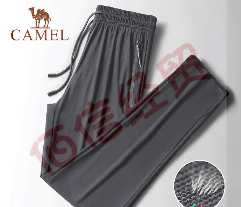 骆驼(CAMEL)运动裤男薄款冰丝裤舒适宽松直筒梭织长裤男装休闲卫裤 XAP435178,黑色(偏小一码) XXXL 自营