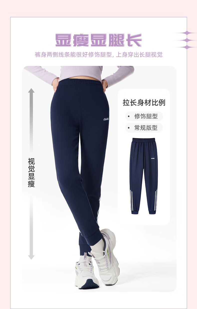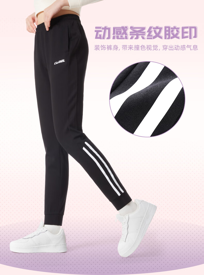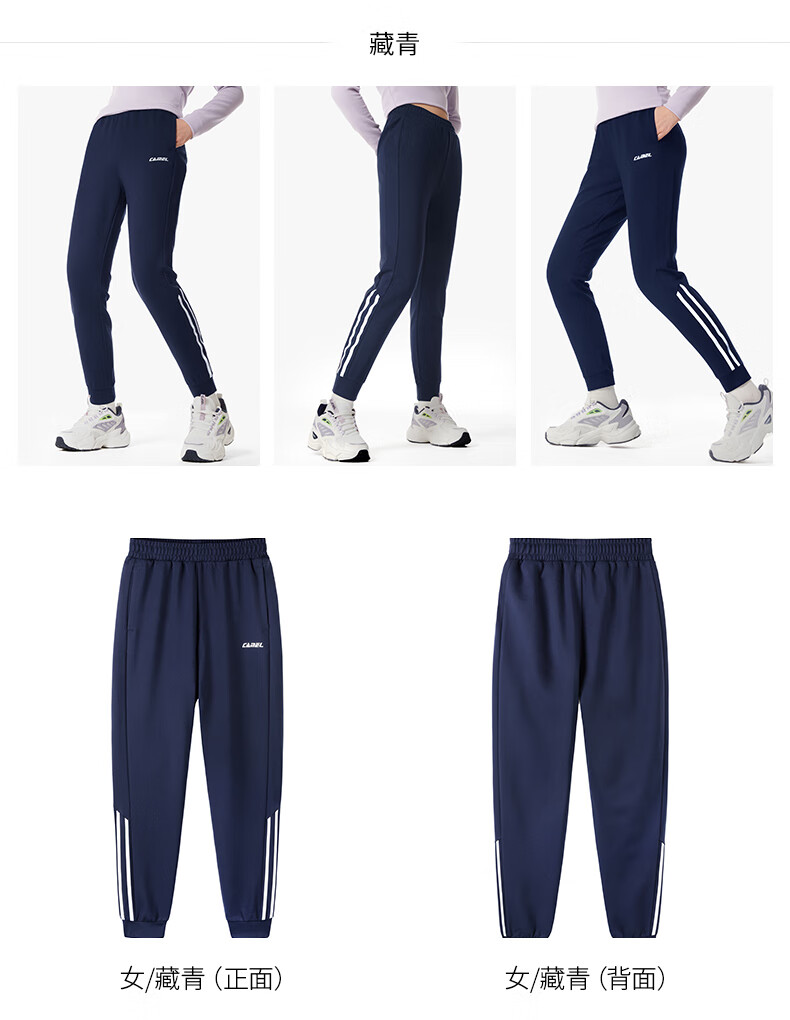 骆驼(CAMEL)运动裤女士休闲跑步宽松裤子百搭透气束脚卫裤长裤女 J1W1Y6108,藏青,女 S 自营