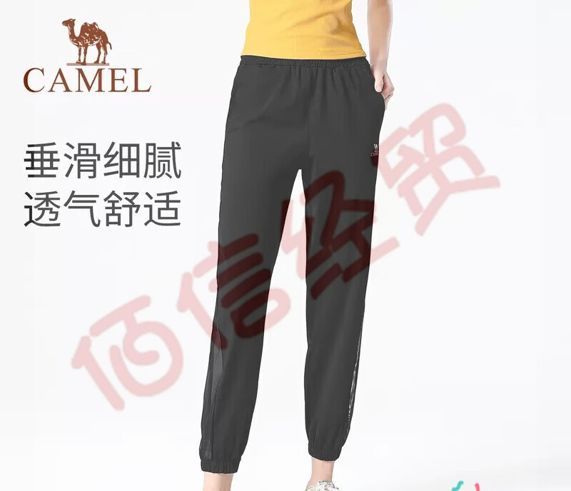 骆驼(CAMEL)运动裤女宽松束脚夏季薄款跑步裤子高腰瑜伽裤长裤透气健身裤 Y23BAFU376,幻影黑 M 自营