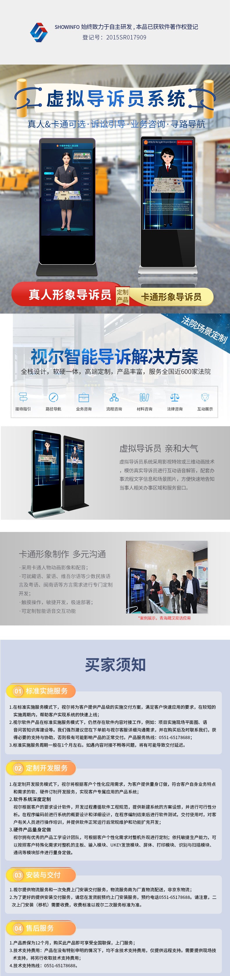视尔(showinfo)虚拟导诉员系统 卡通形象定制 智能诉讼指引 软硬一体 标准卡通版 55英寸屏幕 自营