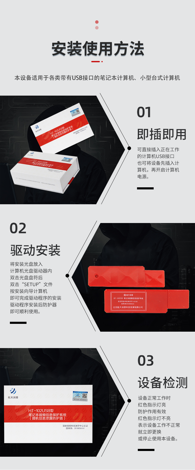 航天润普 笔记本视频信息保护系统 HT-102USB 适用笔记本 笔记本视频电磁干扰 视频干扰器 自营