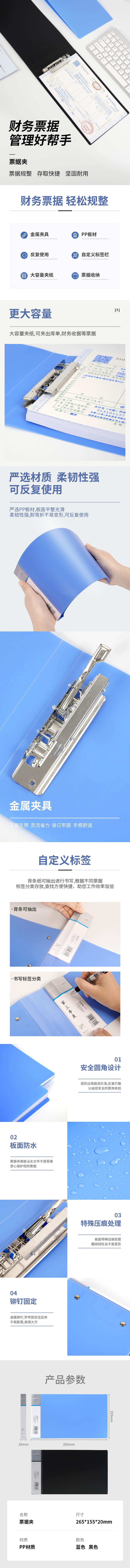 西玛(SIMAA)票据夹A5发票夹财务资料收纳夹文件夹pp材质 1个 6071(265*155mm) 蓝色、黑色(颜色咨询客服)(10个起售) 自营