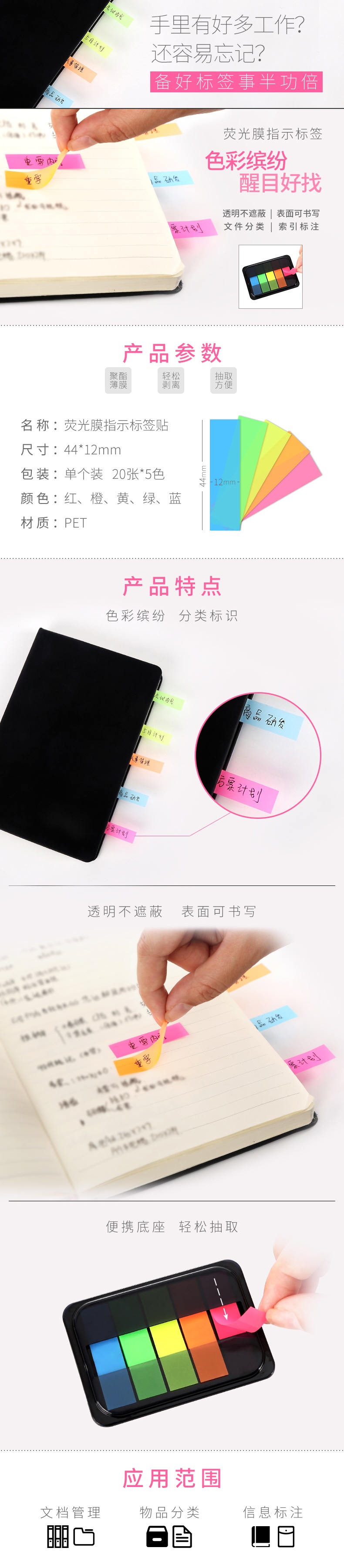 西玛 SIMAA 100张5色荧光膜指示标签贴纸 44*12mm抽取式便利贴便签条记事贴8449(10个起售) 自营