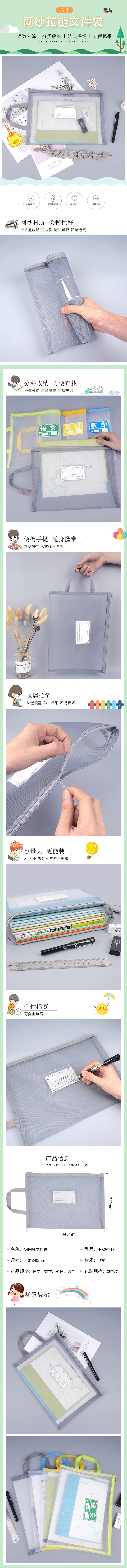 西玛(SIMAA)A4网纱文件袋 透明网格学科分类科目拉链袋 资料收纳袋 多功能袋学生文具 灰色单个装 20213(10个起售) 自营