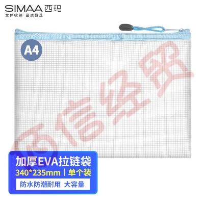 西玛(SIMAA)A4加厚EVA透明拉链袋 耐用文件袋收纳袋 6918浅蓝色(10个起售) 自营