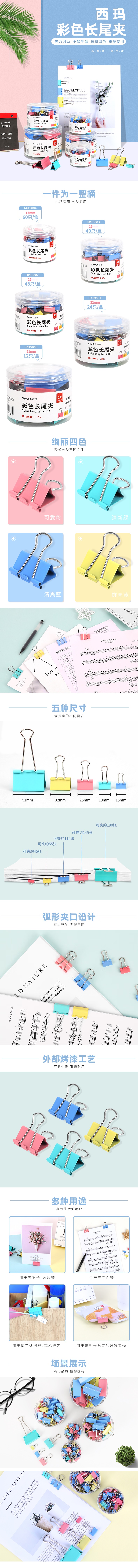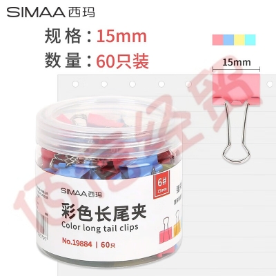西玛(SIMAA)60只彩色长尾夹票夹15mm 燕尾夹办公用品19884(5个起售) 自营