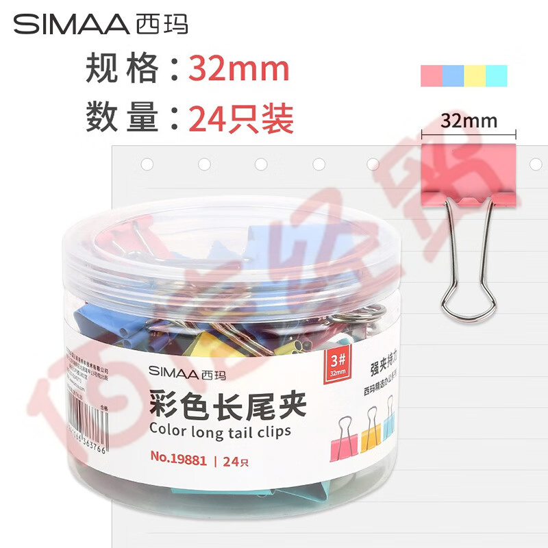 西玛(SIMAA)24只彩色长尾夹票夹32mm 燕尾夹办公用品19881 自营