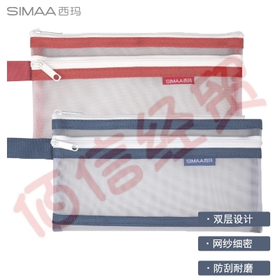 西玛(SIMAA)透明网纱笔袋 学生日常考试笔袋收纳袋 双层笔袋深蓝色 20216(10个起售) 自营