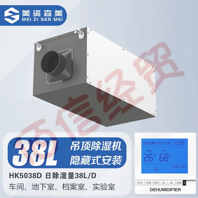 美资森美(MEIZISENMEI) 吊顶除湿机壁挂式工业中央抽湿机地下室管道除湿器吸顶式 HK5038D 日除湿量38L/D 自营