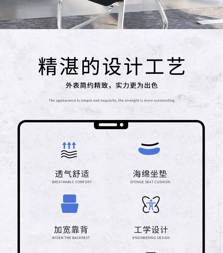 北尧长青电脑椅会议椅家用弓形脚办公椅子洽谈椅会客椅BY-1905