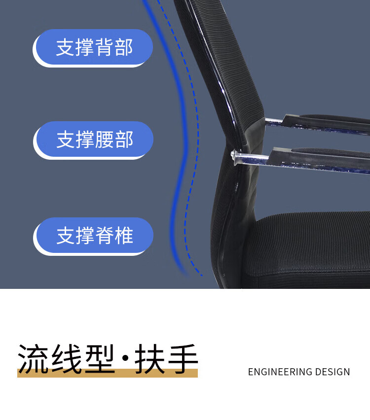 中伟电脑椅家用弓形会议椅职员办公椅子棋牌室麻将椅黑色