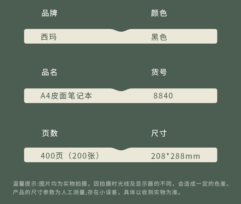 西玛(SIMAA)商务笔记本子A4皮面办公记事本复古文具加厚日记会议记录本(黑色)10本装8840*10 厂直发货 自营