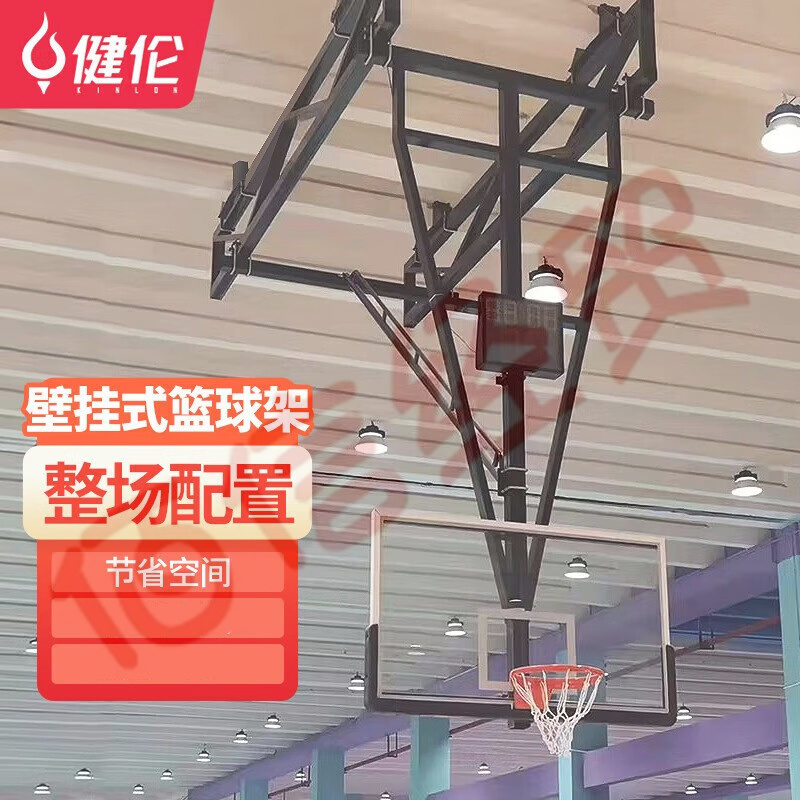 健伦(JEEANLEAN)篮球架标准成人室内悬挂吊顶挂式自动折叠篮球板 固定式吊顶篮球架 自营