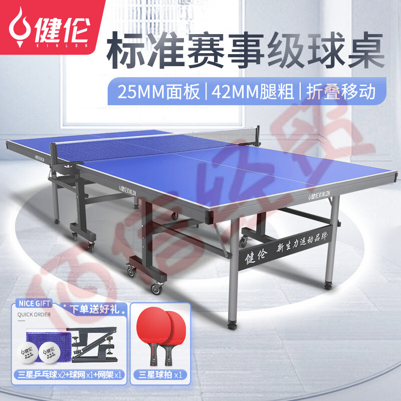 健伦(JEEANLEAN) 乒乓球桌 家用室内标准可折叠移动专业比赛乒乓球台 KL3625赛事款(25MM带轮) 自营