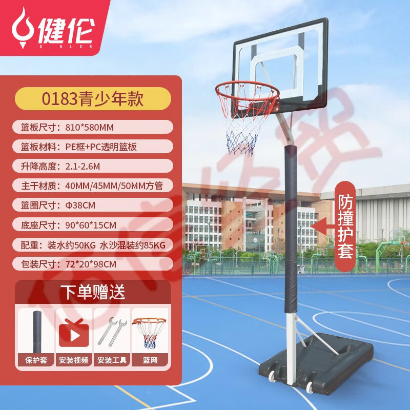 健伦(JEEANLEAN) 篮球架成人可升降式家用户外青少年儿童可移动便携式投篮架 0183青少年版+保护套 升降调节 自营