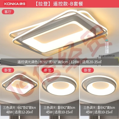 康佳(KONKA)LED吸顶灯客厅大灯卧室书房全屋灯具套餐【拉登】48瓦-三色调光 【拉登】 3室1厅 自营
