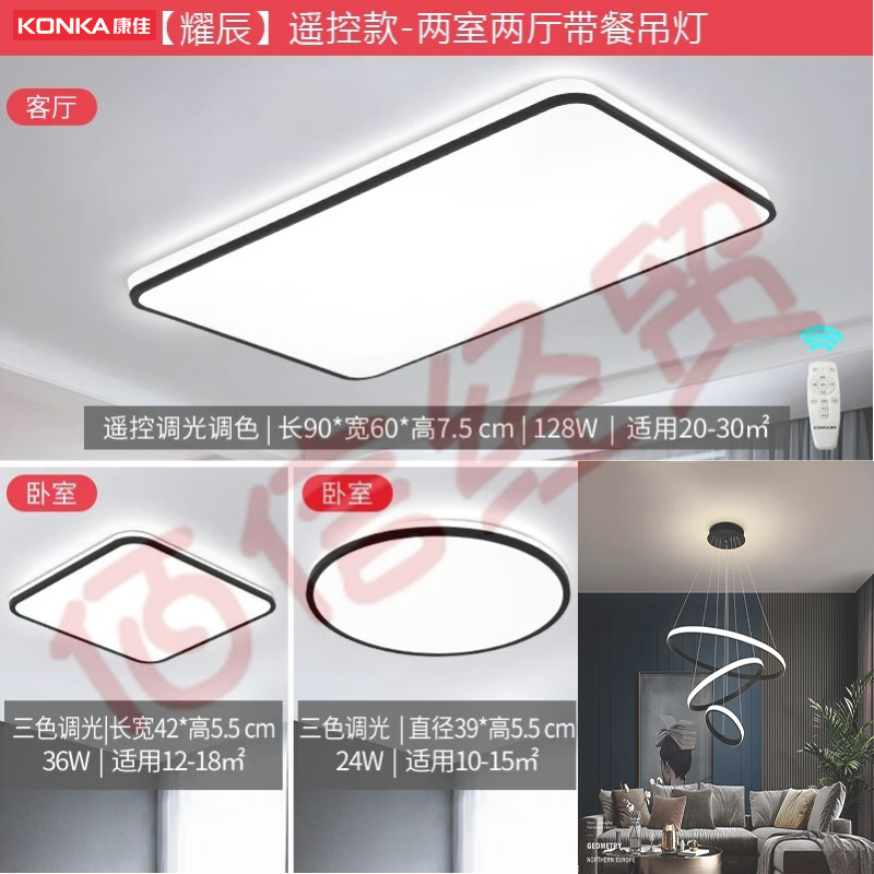 康佳(KONKA)客厅灯LED吸顶灯客厅卧室书房餐厅灯超薄灯饰北欧现代灯具 耀晨 【耀辰】两室二厅 自营