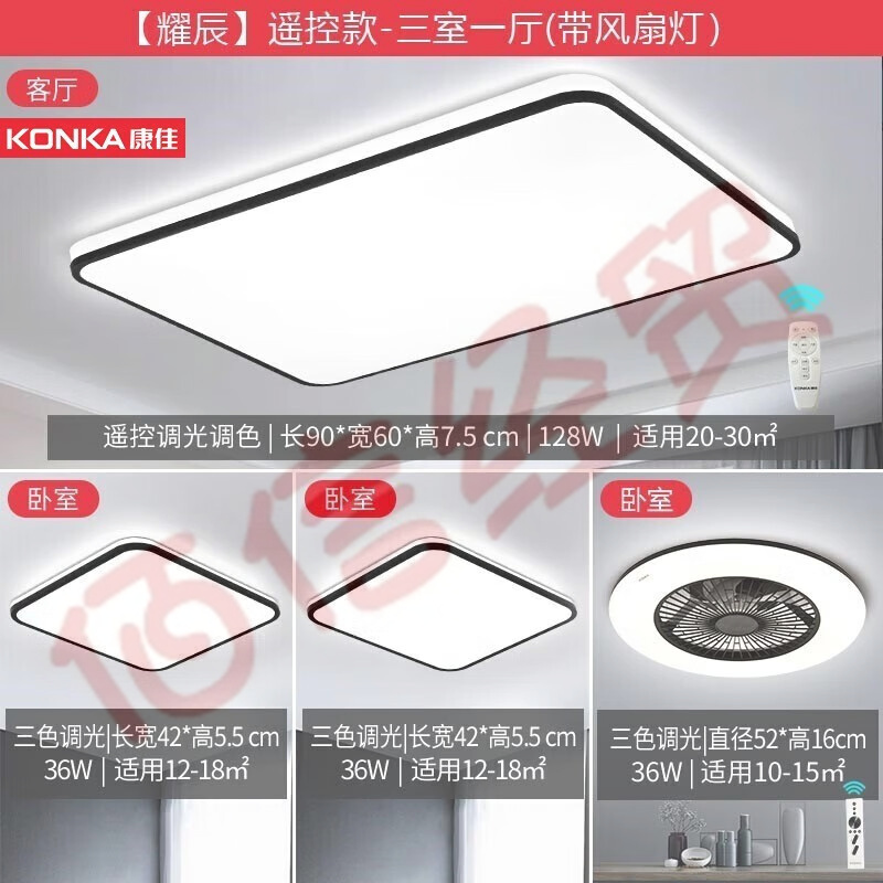 康佳(KONKA)客厅灯LED吸顶灯客厅卧室书房餐厅灯超薄灯饰北欧现代灯具 耀晨 【耀辰】三室一厅(带风扇) 自营