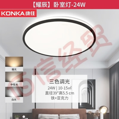 康佳(KONKA)LED客厅灯北欧简约大气卧室吸顶灯 24瓦-三色调光圆卧室灯 自营
