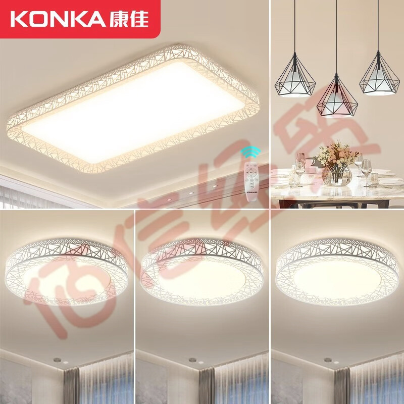 康佳(KONKA)客厅LED吸顶灯卧室书房灯简约中式风鸟巢灯具全屋套餐 织晖 【织晖】三室两厅带餐吊灯 自营