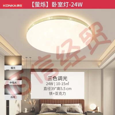 康佳(KONKA)卧室灯吸顶灯客厅灯具书房遥控LED灯调光调色全屋灯饰套餐 萤烁 【萤烁】三色调光圆卧室灯 自营