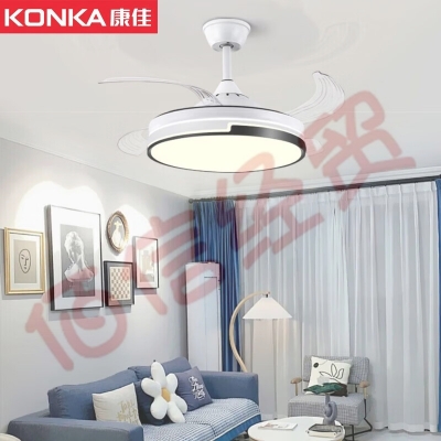 康佳(KONKA)大风力风扇灯摇头送风吸顶吊扇灯餐厅卧室客厅风扇一体灯 吊扇灯黑白拼色 自营
