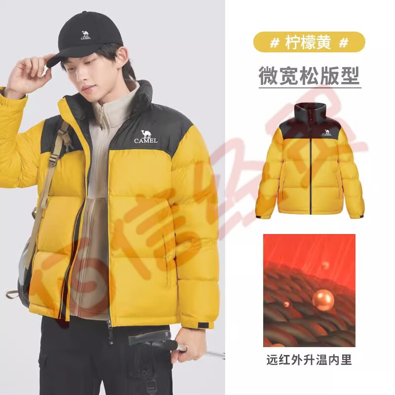 骆驼【baby同款】羽绒服男女同款2023秋冬[小火炉]锁温保暖羽绒服外套 秋叶黄,男女同款(抗寒-20°C) L 自营