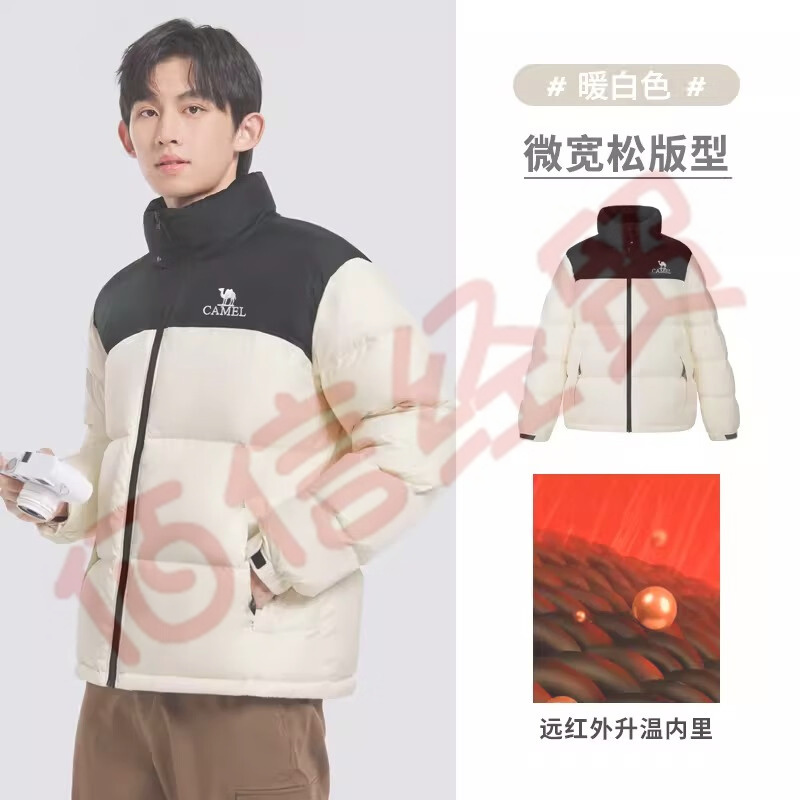 骆驼【baby同款】羽绒服男女同款2023秋冬[小火炉]锁温保暖羽绒服外套 暖白,男女同款(抗寒-20°C) L 自营