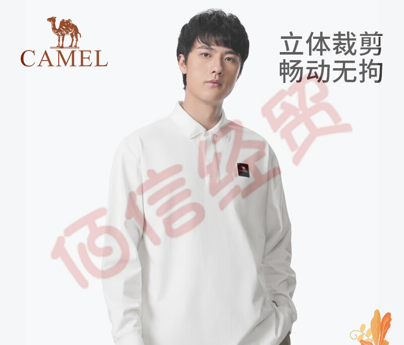 骆驼户外男长袖速干POLO衫2023年春宽松翻领运动上衣 A13BA6I018,无际白,男 XL 自营