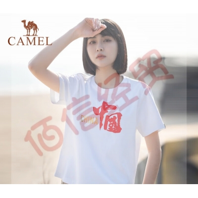 骆驼(CAMEL)户外速干衣女款春夏季国潮印花时尚宽松透气休闲上衣 7012212001,极地白,女 S 自营