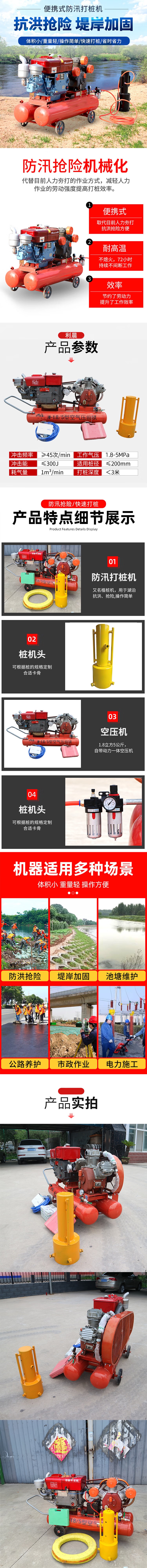 利晨便携式气动柴油打桩机植桩机河堤防汛抗洪抢险光伏建筑防护栏木桩 自营