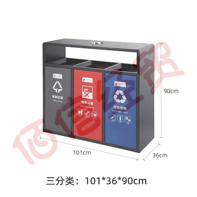 乙晨合分类垃圾桶带轮垃圾桶脚踏垃圾桶金属环卫垃圾桶 镀锌三分类垃圾箱 自营