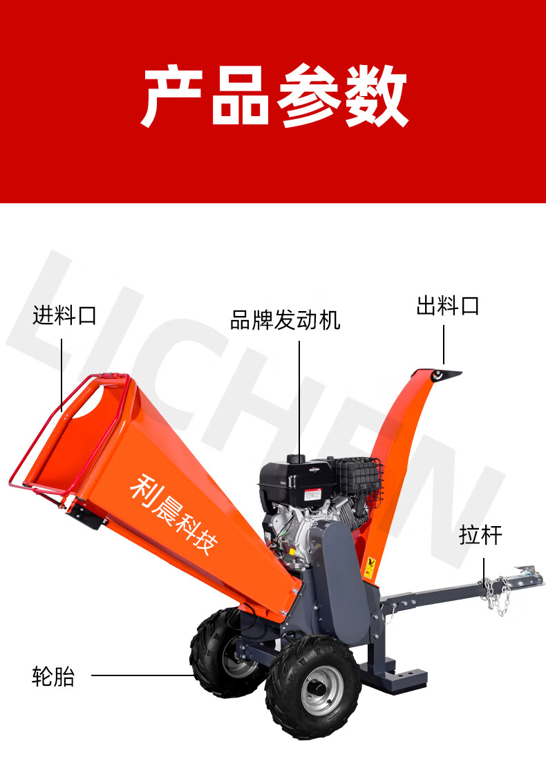 利晨 碎枝机木材树枝粉碎机大型多功能园林碎木果园绿化移动式汽油葡萄枝玉米秸秆15马力 LC-SZJ-15(定制款) 自营