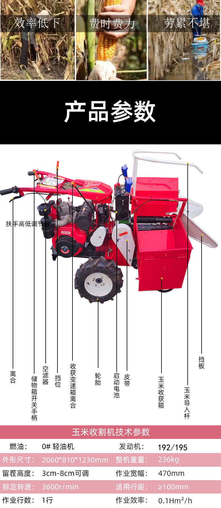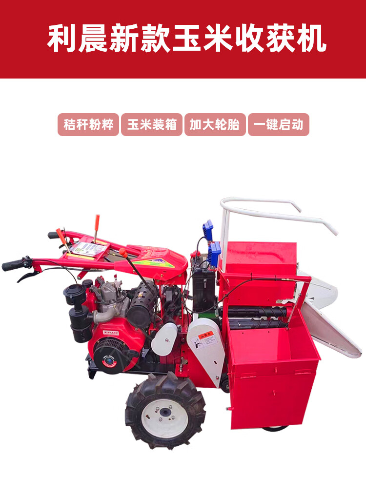 利晨 单行玉米收割机小型收玉米机器神器玉米联合收获机摘苞米机玉米秆粉碎秸秆还田一体机 195柴油皮带款 自营