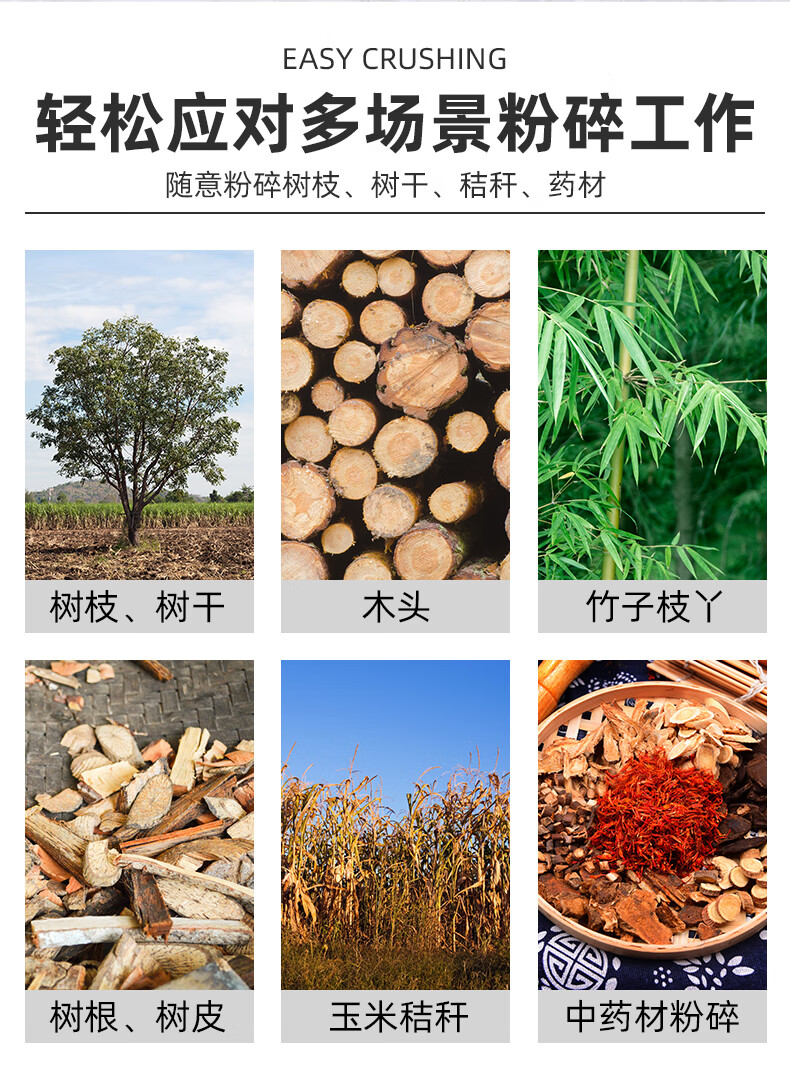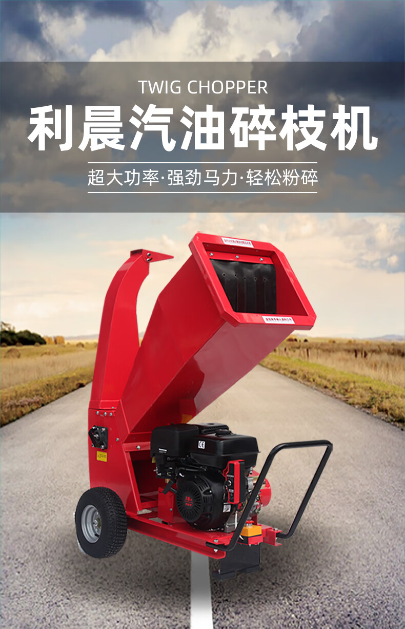 利晨木材树枝粉碎机大型多功能园林碎木果园绿化移动式汽油葡萄枝秸秆汽油树木秸秆粉碎机碎木机碎枝机S6500E 自营