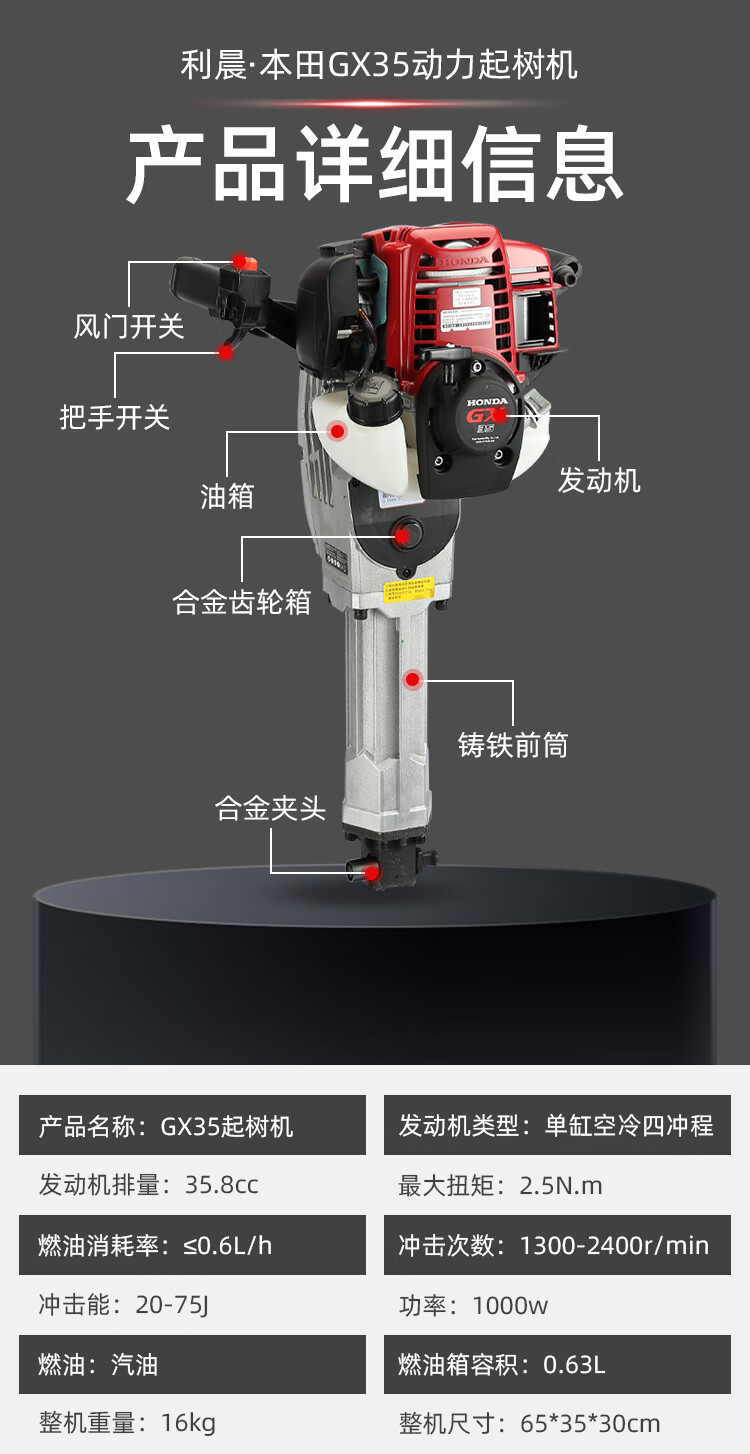 利晨汽油镐挖树机神器起树机起苗机移树机挖坑挖沟挖土本田GX35植树机 自营