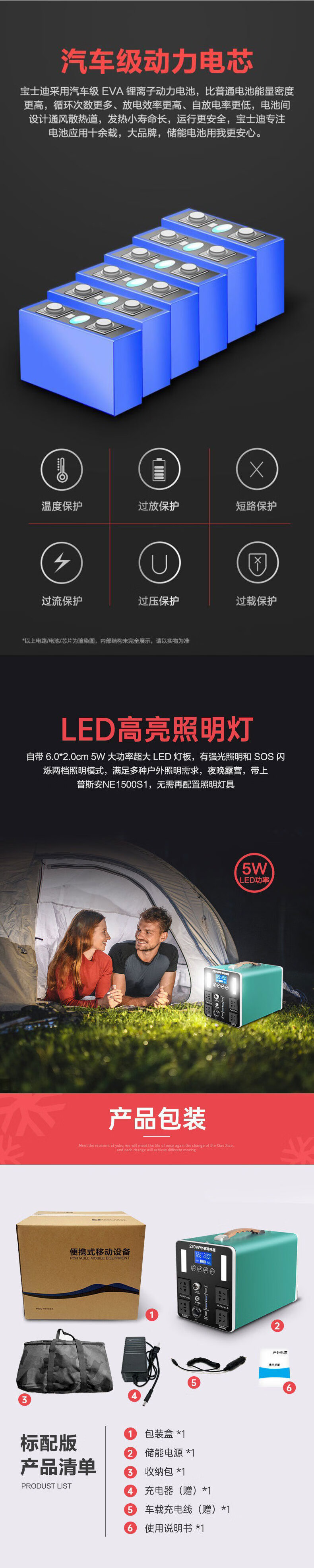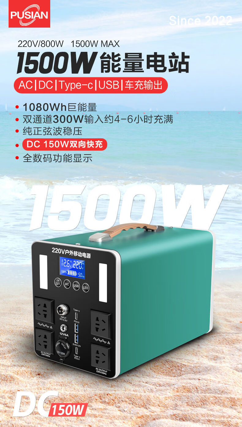 利晨户外移动电源220V摆摊大容量自驾游露营1800W大功率车载储能电瓶 自营