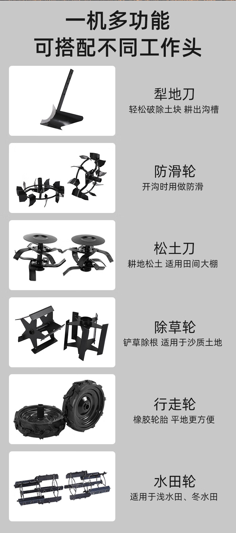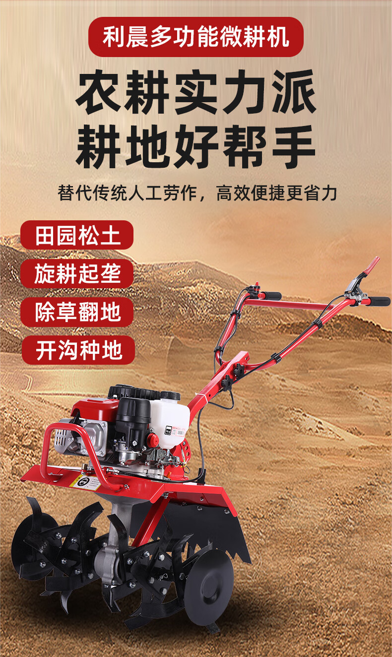 利晨宗申NP150汽油微耕机农用犁地翻土松土开沟机耕田翻地耕地旋耕机(主机+旋耕刀+轮胎+开沟器+轮胎) 自营