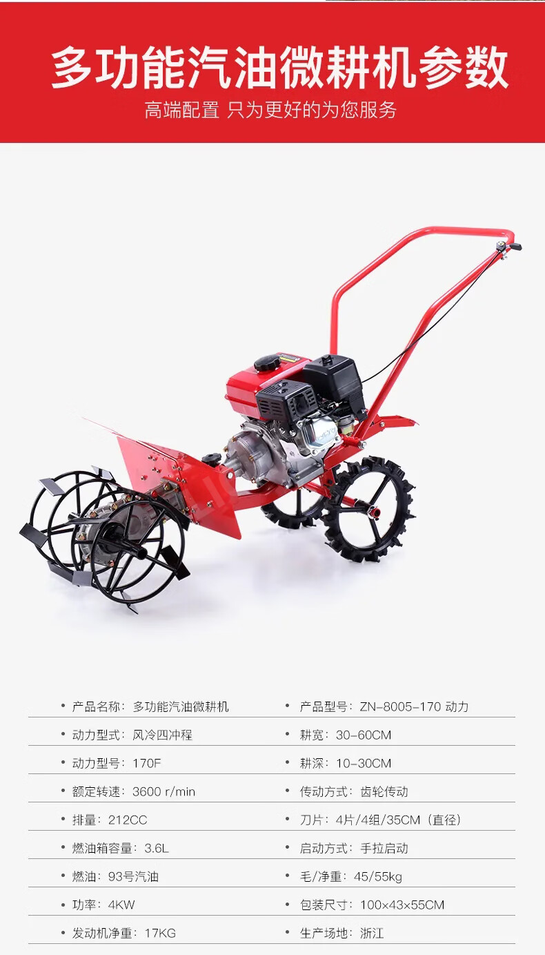 利晨小型开沟机微耕机汽油耕地旋耕挖沟耕田除草翻土施肥培土锄草机 (四冲170汽油+后轮+除草轮) 自营