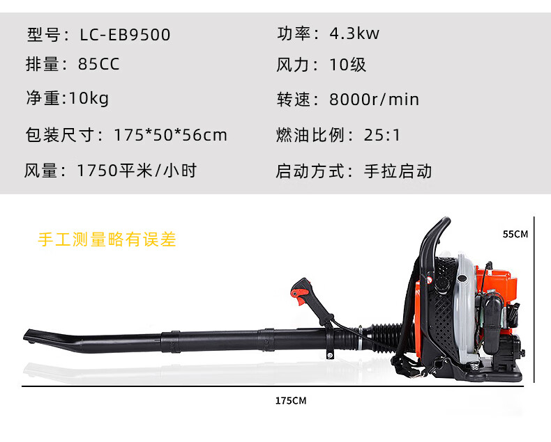 利晨 背负式二冲程汽油大功率风力灭火机大棚吹雪机落叶工地鼓风机马路吹尘机园林吹树叶吹风机 二冲EB9500 自营