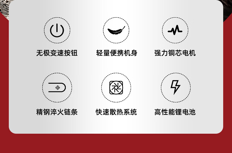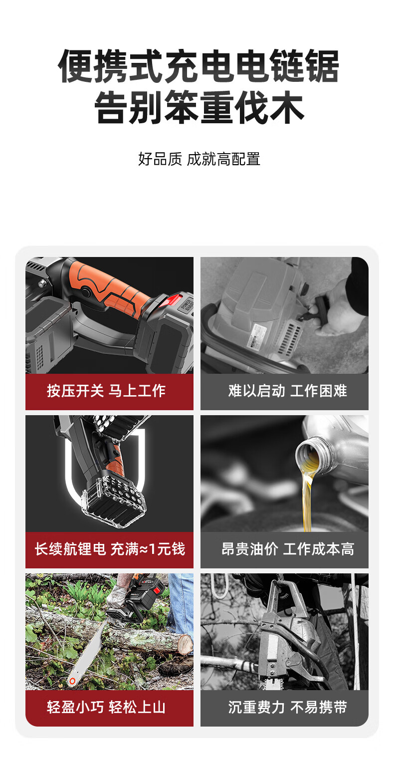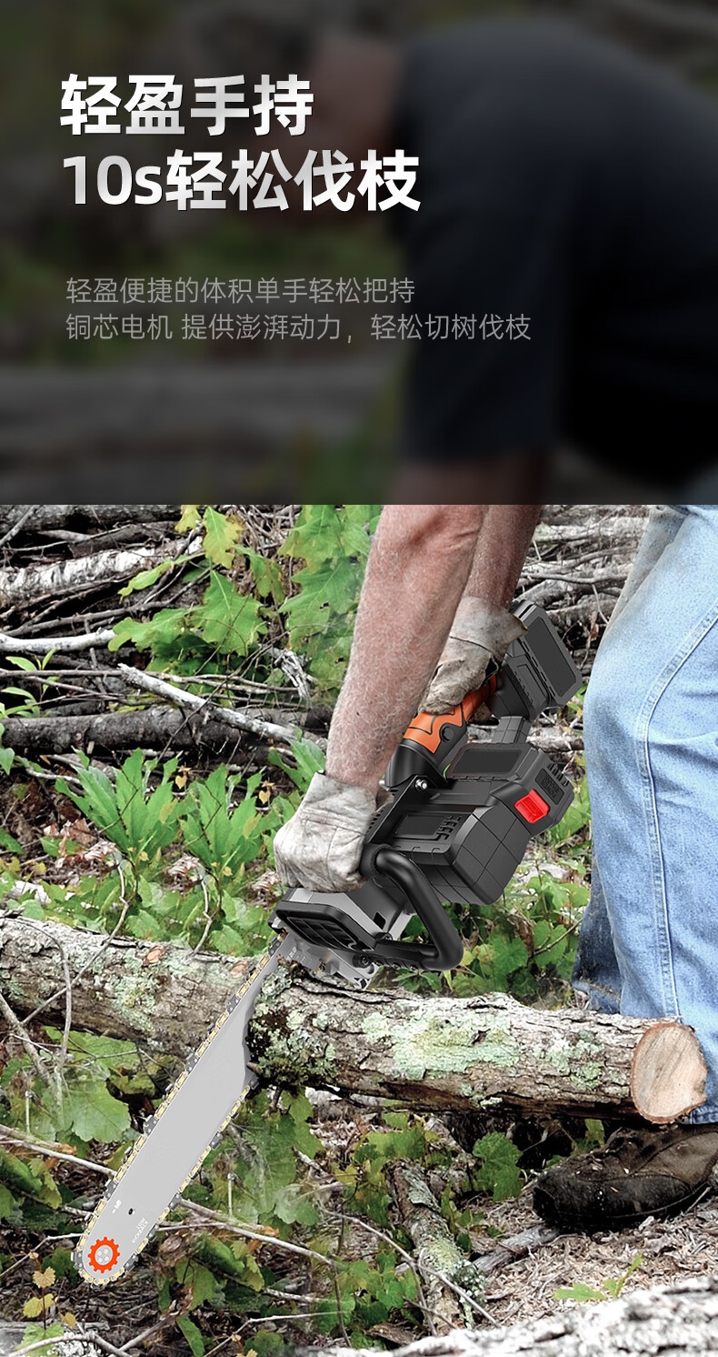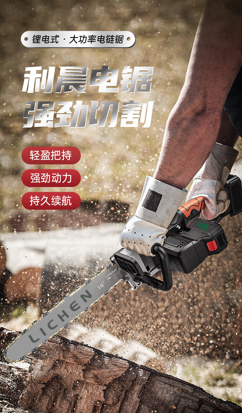 利晨 充电式锂电锯汽油锯电动伐木锯手持无线迷你小型家用电链锯手提大功率链条单手马刀锯树枝修枝锯砍树 自营